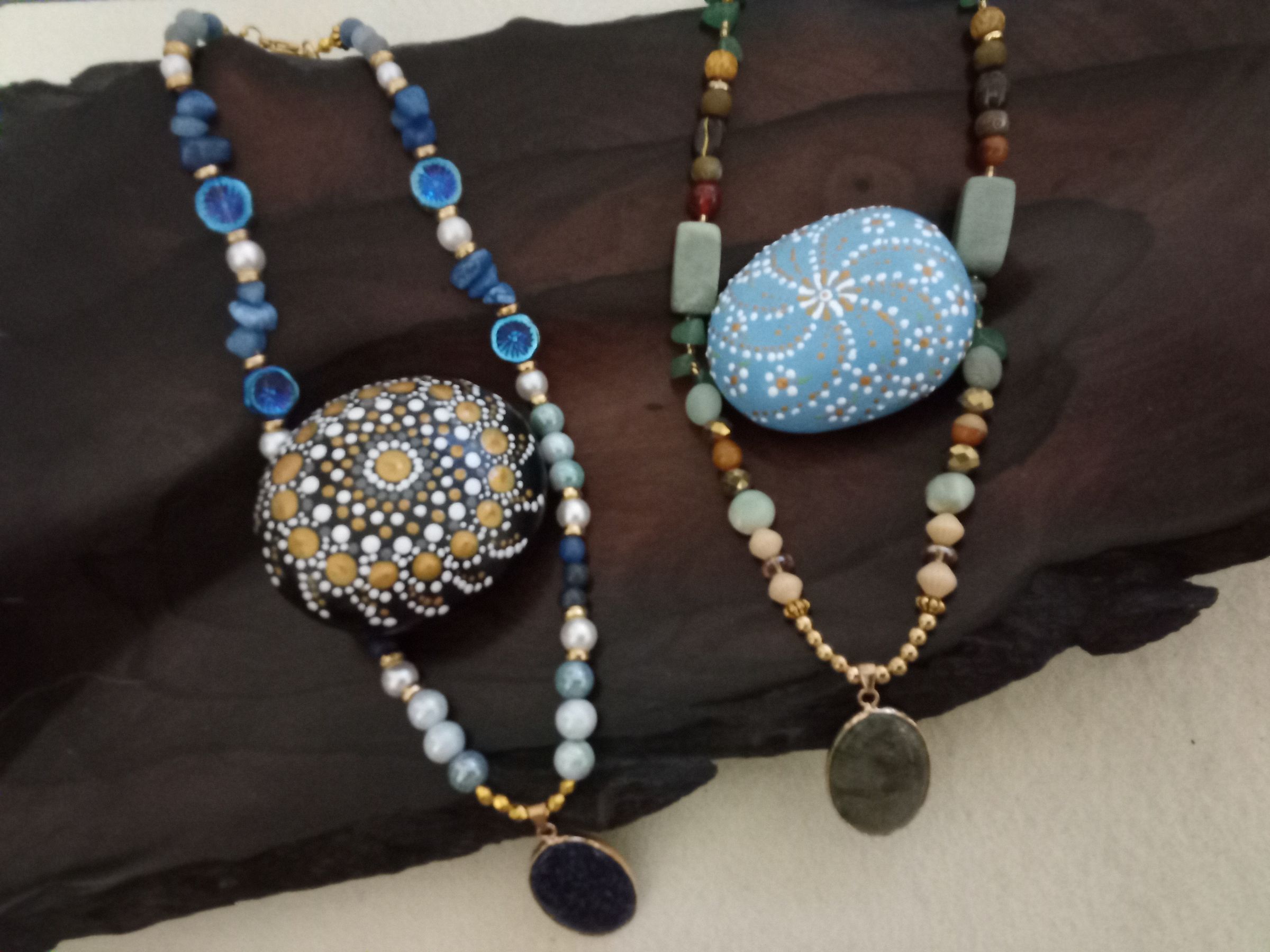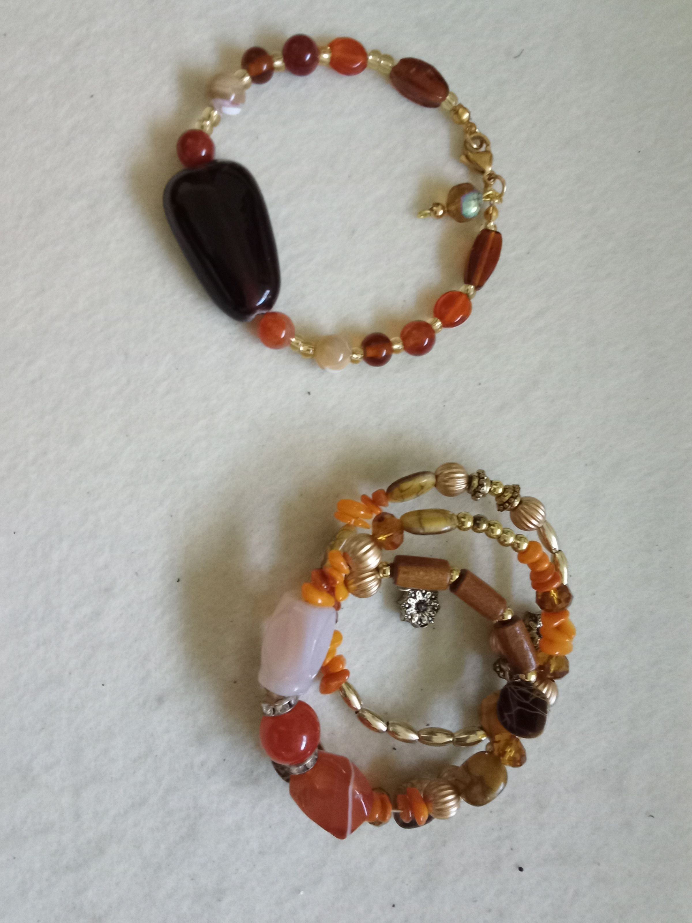 I use gemstones, crystal, glass,ceramic beads, solid stone and wooden beads for jewelry making. I use high quality wire, threading materials findings and closures.